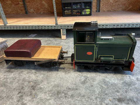 5" Koff II locomotief met bijbehorende wagon. De accu's bevinden zich in